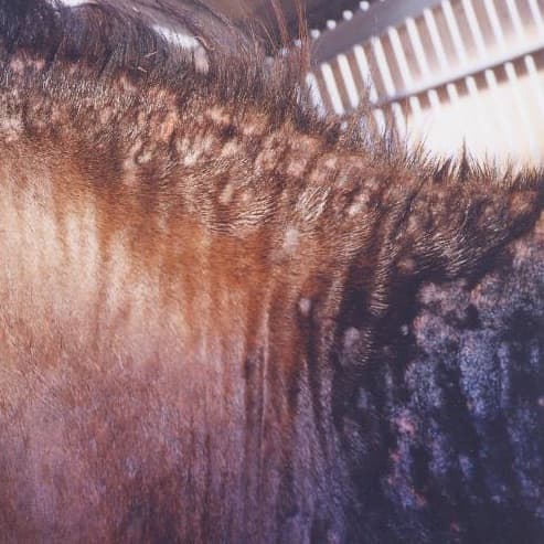 - Intenzivno srbenje: Primarni simptom poletnega ekcema je močno srbenje, zaradi česar se konji prekomerno praskajo.