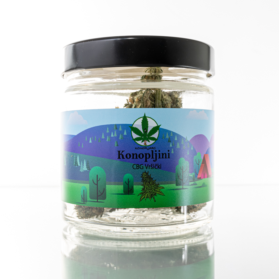 Konopljini vršički oz. konopljini cvetovi so ročno obrani in izbrani, zapakirani v trajnostni stekleni embalaži, ki jo lahko pri nas ponovno napolnite z vršički. Dišeči vršički konoplje so bogati s trihomi, terpeni in kanabinoidi (CBG, CBD) ter ne presegajo najvišje zakonsko dovoljene vsebnosti THC (<0.3%).