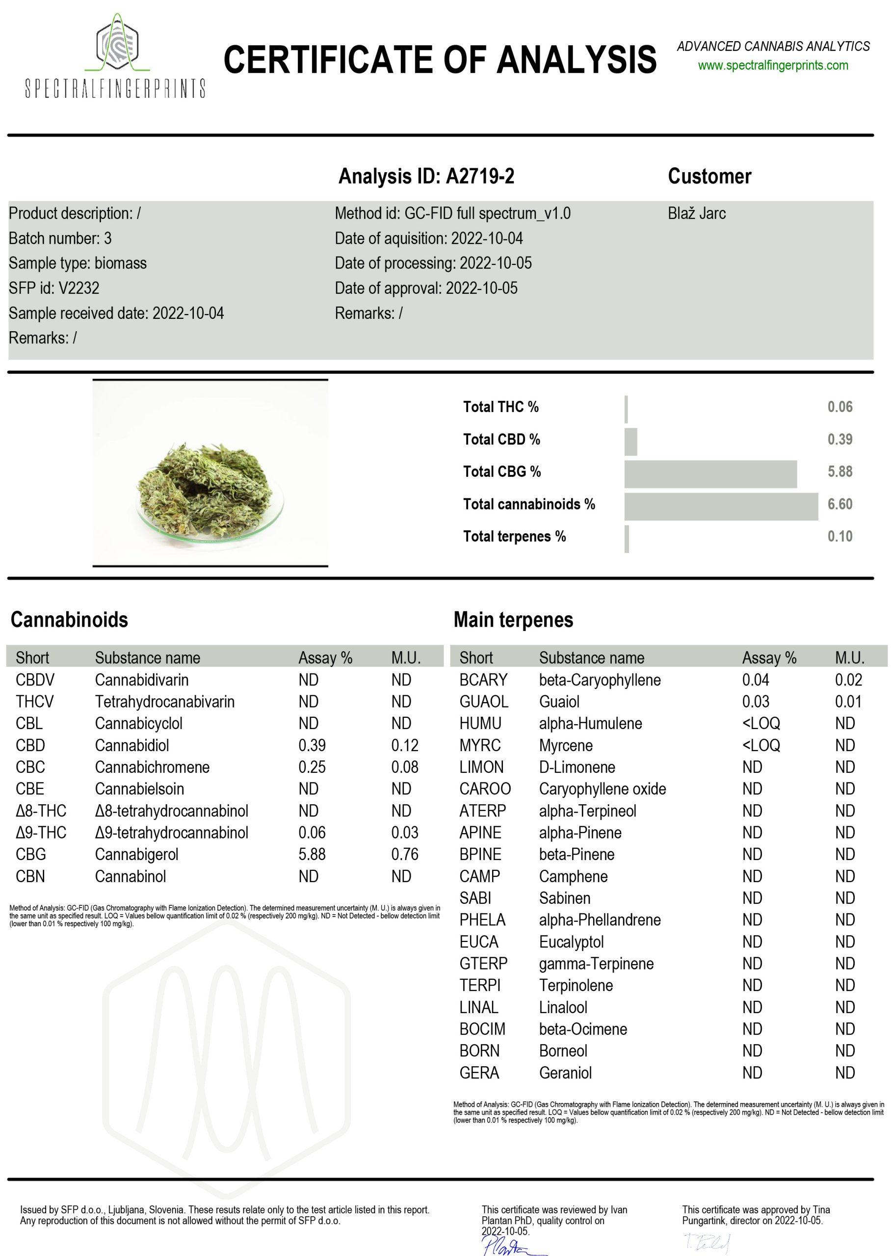 Analizni certifikat opravilo podjetje Spectral Fingerprints.
